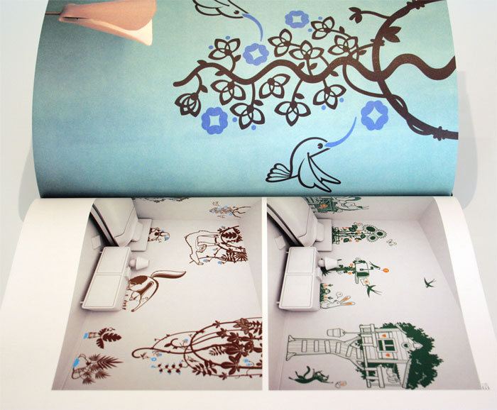 As announced on our Facebook page and on Twitter few days ago, we finally received a copy of Span – the boundary between space and graphics (Page One Publishing, lang. EN, 250 pages). This book features a variety of graphic elements and their application in different spaces : 5.5 Designers (FR), Jon Burgerman (UK), Ja!Studio (ES), Motorfinger (NO), Pandarosa (AU), Rinzen (AU/DE), Lee Jang Sub (KR), Poulin+Morris (US), Void Planing (KR), Paris Airport (FR), etc… The visual elements do not only display the philosophy of spatial decoration, but also create a great interaction with audience, providing many insights into the visual relationship between graphics and space : installation, stand, interior & exterior graphics, wallcovering, etc… The e-glue concept of considering kids’ space as a blank page for illustration perfectly exemplifies the book’s theme and thus was selected to be featured in it through 3 double pages ! Here are some pictures…