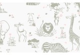 With all its adorable safari animals, this beautiful wallpaper in trendy colors taupe and pink adds a touch of cheerfulness and brightness to your girls room.