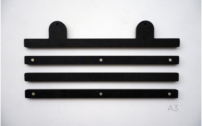Les porte-affiches Earwigo par E-Glue permettent d'accrocher élégamment et de façon originale des posters A4 ou A3 dans une chambre enfant. Constitués de 2 baguettes hautes à clouer (ou visser) au mur par des trous prépercés aux oreilles et de 2 pièces basses pour bien lester et tendre l'image, ces jolis cintres pour affiches couronnent et complétent nos posters en bois Minipic, mais pas que ! Originaux, amusants et raffinés, ils s'intégrent aux chambres d'enfants contemporaines, à la décoration et au design exigeants.