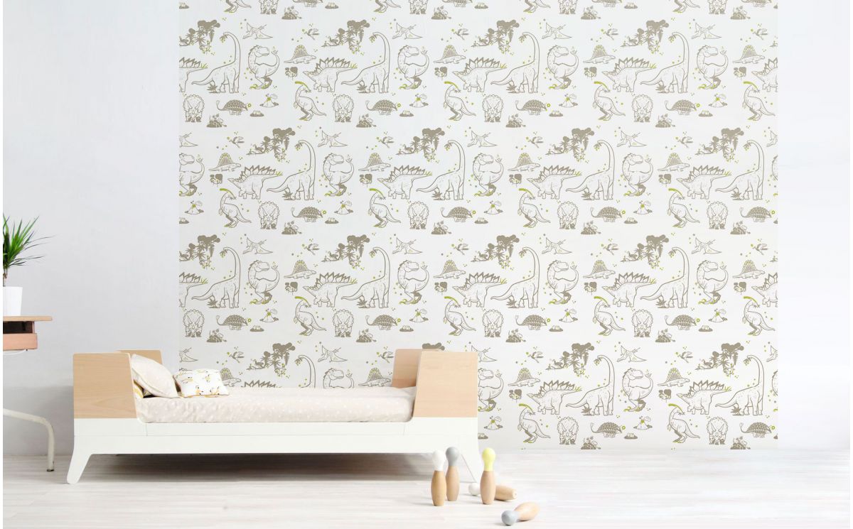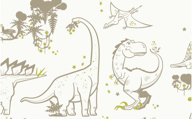 PAPIER PEINT GARÇON DINOSAURE TAUPE :
