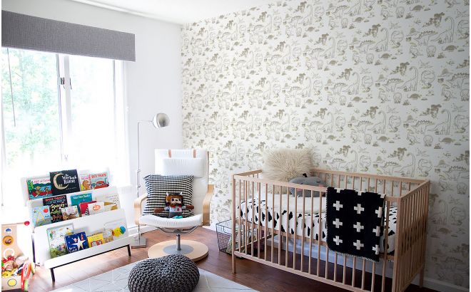 Ce superbe papier peint dinosaure dans sa déclinaison taupe et vert apporte une touche d'originalité à votre chambre garçon.